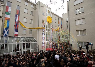 En accueillant paroissiens, membres du personnel et invités venus d’une douzaine de pays, il a présenté la paroisse de Bruxelles comme « une église internationale pour une ville internationale, destinée à aider tous les peuples de l’Europe ».